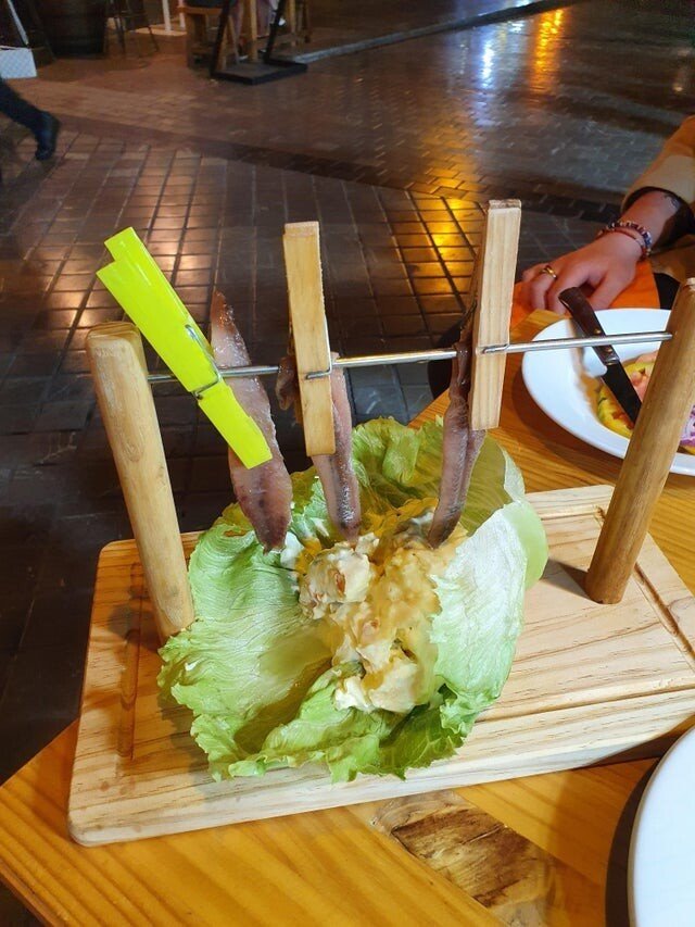 Багато шеф-кухарів, намагаючись залучити до закладу більше гостей, намагаються здивувати не лише смаком страв, а й незвичайною подачею. Щоправда, Іноді їхні ідеї виглядають вкрай дивно і сумнівно. Можливо, комусь це сподобається, проте більшість людей, бачачи подібне на своєму столі, скажуть, що це трохи перебір.