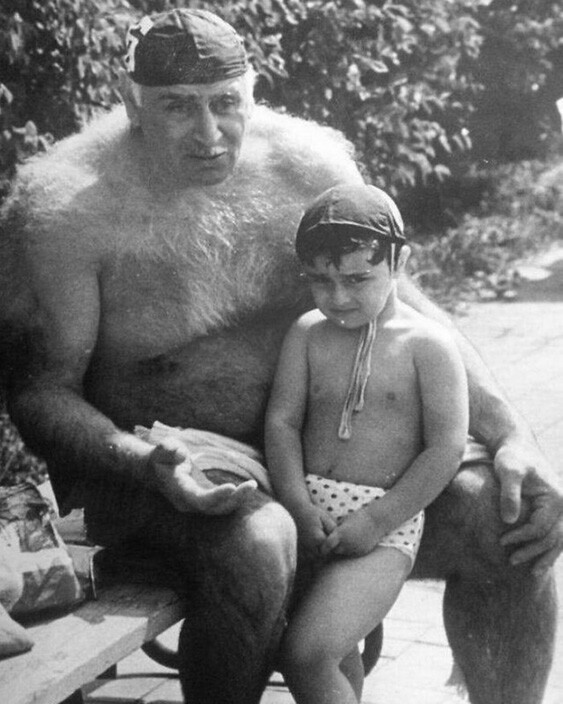 Легендарний радянський грузинський ватерполіст Петре Мшвенієрадзє з онуком, 1990 рік