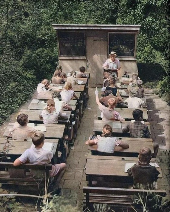 Школа під відкритим небом у 1957 році, Нідерланди На початку 20 століття в Європі почався рух до шкіл просто неба.