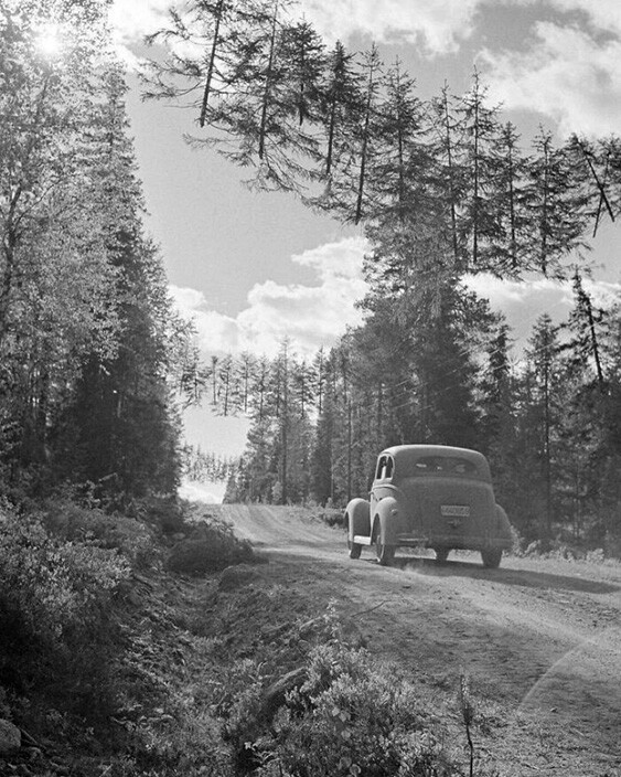 Замаскована дорога у Фінляндії під час Другої світової війни. Дерева підвішені мотузкою, щоб союзні сторожові вежі не бачили дороги. 27 червня 1941 рік