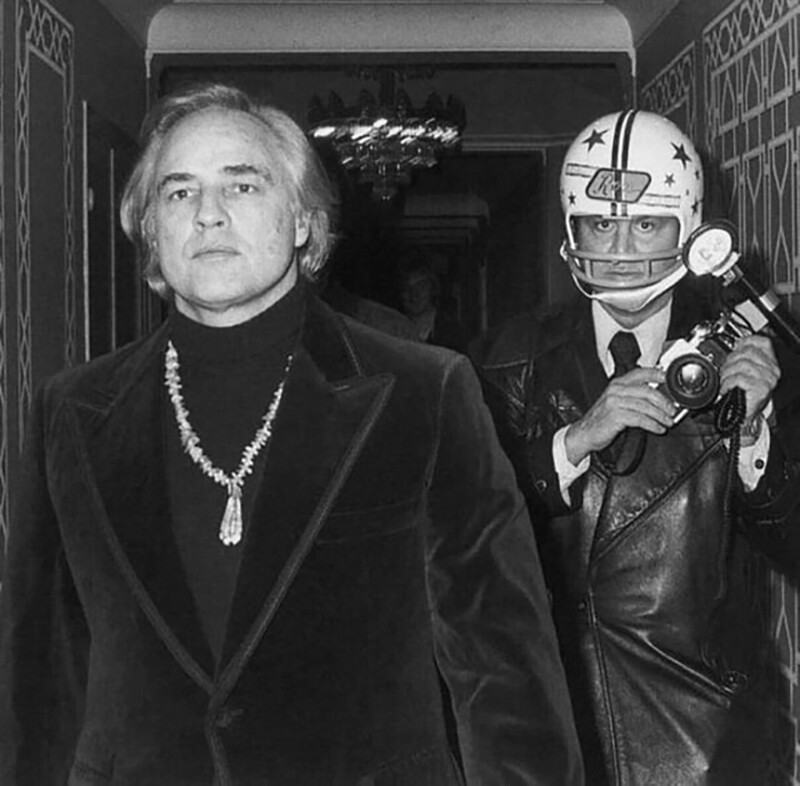 Фотограф-папарацці Рон Галелла одягнув би футбольний шолом поряд з актором Марлоном Брандо після того, як Брандо одного разу вдарив його кулаком, зламав йому щелепу і вибив п'ять зубів у 1973 році
