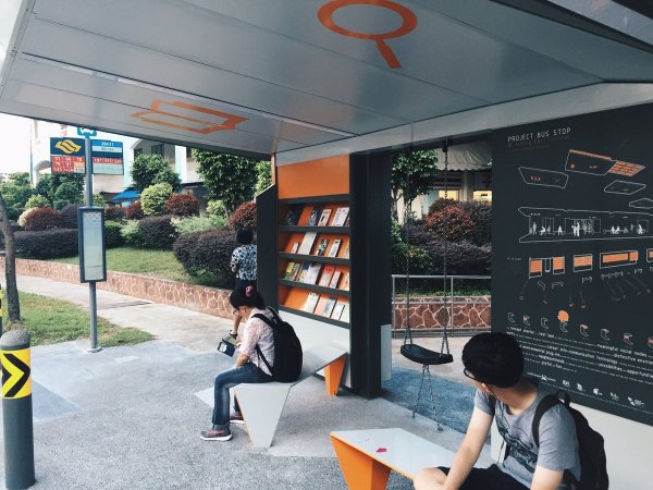 Зупинка знаходиться у Сінгапурі. Тут є гойдалка, книжкова куточок, порти для заряджання телефонів та панель, що показує шлях прямування автобуса.