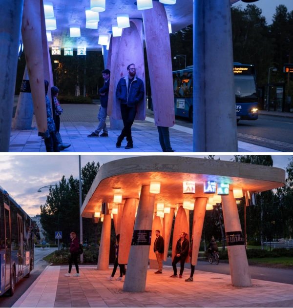 Адміністрація міста Умео вирішила подбати про своїх мешканців та побудувати зупинку, яка б дозволила чекати автобус з комфортом, незважаючи на суворі холоди. Усередині розташовані спеціальні мобільні капсули, що дозволяють з комфортом сховатися від вітру та дощу. Про автобусі, що наближається, сповістить звуковий сигнал.