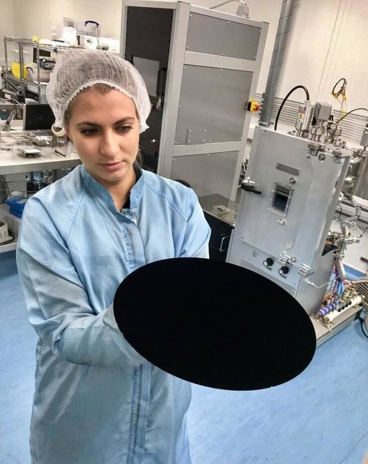 8. Шматок матеріалу, пофарбований фарбою Vanta Black, настільки темною, що матеріал не відбиває світло і виглядає як шмат порожнечі.