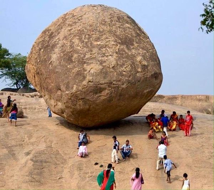 10. Цей величезний валун стоїть на крутому схилі на півдні Індії вже 1400 років