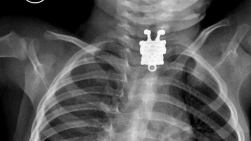 11. Рентгенівський знімок 16-місячної дитини, що проковтнула брелок