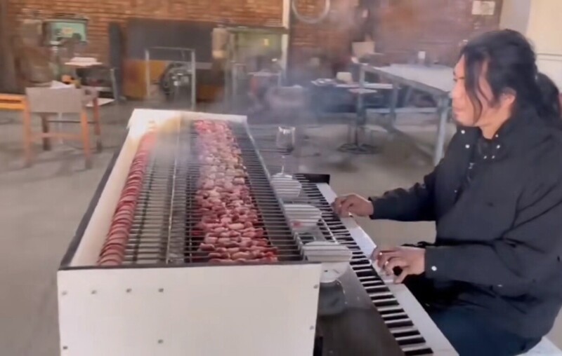 Мангал-піаніно. Воно не тільки функціонує за своїм прямим призначенням (витягує звуки), але ще й катається
