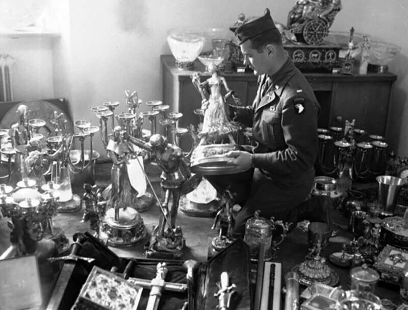 Американський солдат оглядає статую з чистого золота, частину особистого видобутку Германа Герінга, знайдену 7-ю армією США печера на схилі гори поблизу Шенау-ам-Кенігзеє, Німеччина, 25 травня 1945 рік