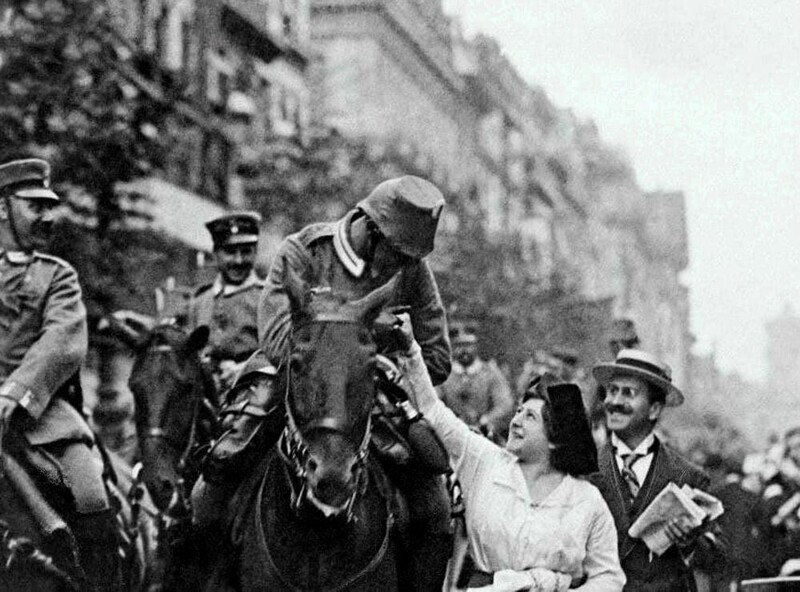 Мобілізація: мирні жителі проводжають німецьких солдатів на фронт, 1914 рік