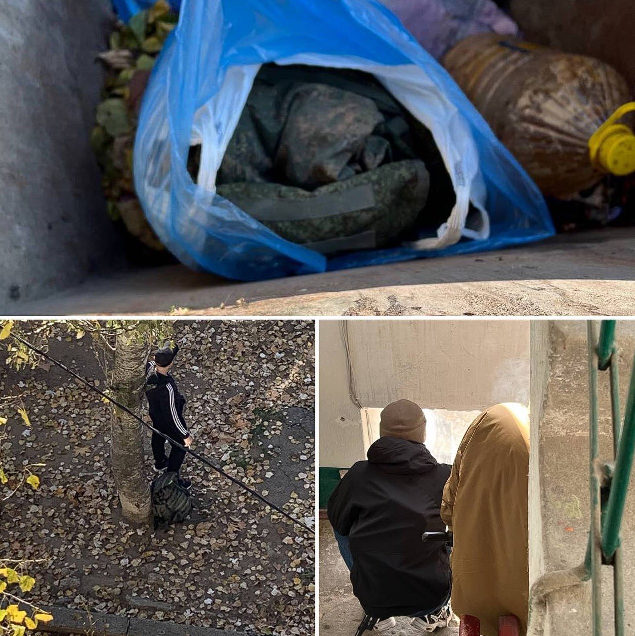 Ті хто не встиг евакуюватися, викидають форму на смітник.