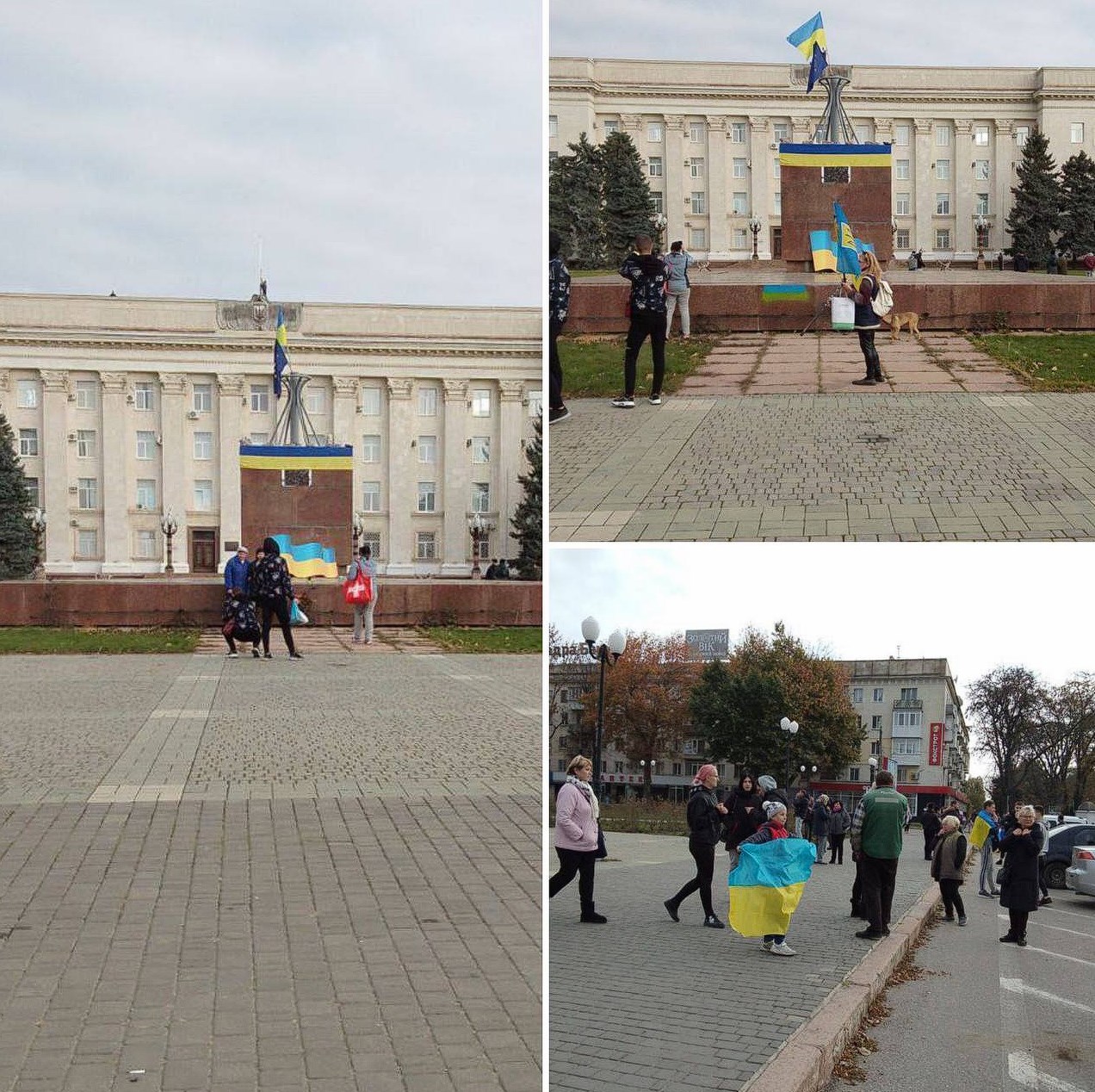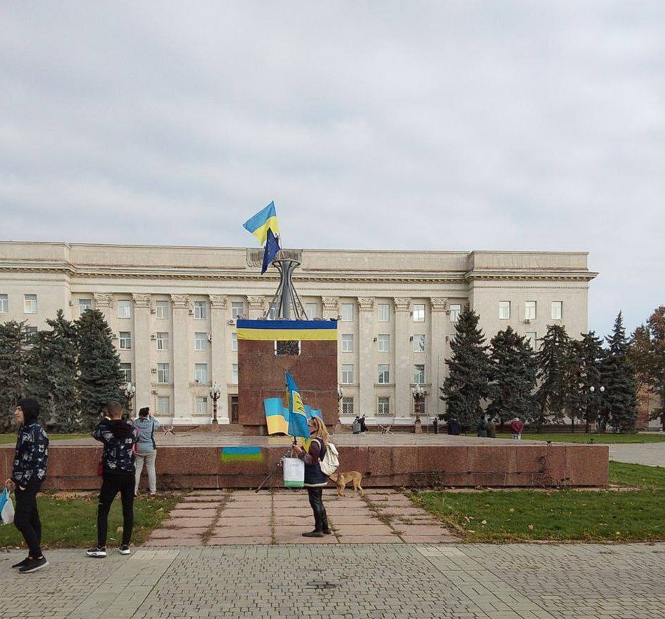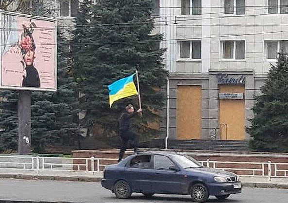 - Херсон – це Україна! Центр міста, місцеві жителі вивішують прапори та чекають на ЗСУ.