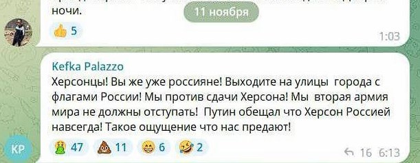 - «Нас попустили українці»: реакція русаків на визволення Херсона.