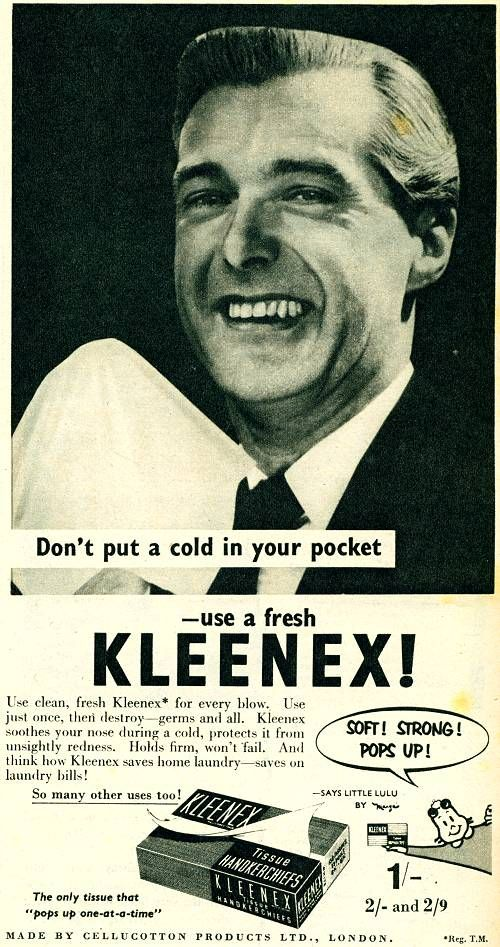 У Росії їх частіше називають паперовими хустинками. Їх також винайшли умільці з Kimberly-Clark - коли думали куди подіти надлишок целюлози. Новий продукт назвали Kleenex та запустили масову рекламу. За кілька років серветки були вже у сумочці у кожної американської жінки.