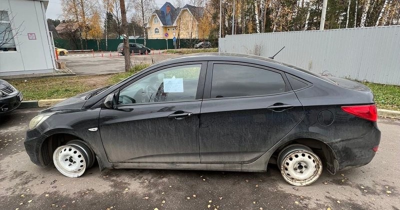 Вчинок однієї автомобілістки з Москви спантеличив користувачів мережі. Жінка припаркувала свій Hyundai Solaris на одних лише колісних диски, без шин, і залишила під склом записку для поліцейських.