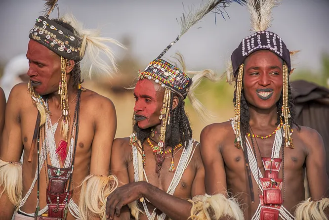 Традиційний конкурс краси серед африканських племен відрізняється від подібних конкурсів, які ми звикли бачити. Тут за титул красеня борються хлопці, а в суддях сидять дівчата. Щоб завоювати серце жінки, африканцям приходитьсяя не солодко. Вони ретельно підбирають собі макіяж і вбрання, яке обов'язково щось символізуватиме. Нагорода — необмежену кількість дівчат, що сподобалися, з якими вони матимуть змогу прожити цілий місяць.