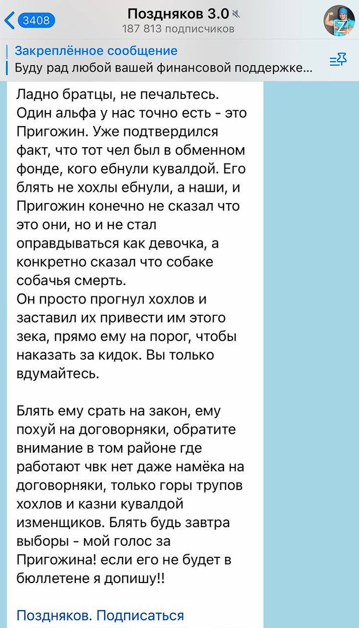 Що дуже очікувано. І ми про це вже говорили! І якщо зек Пригожин буде біля керма — смертна кара і злидні російським забезпечені. Вони остаточно трансформуються у рабів.