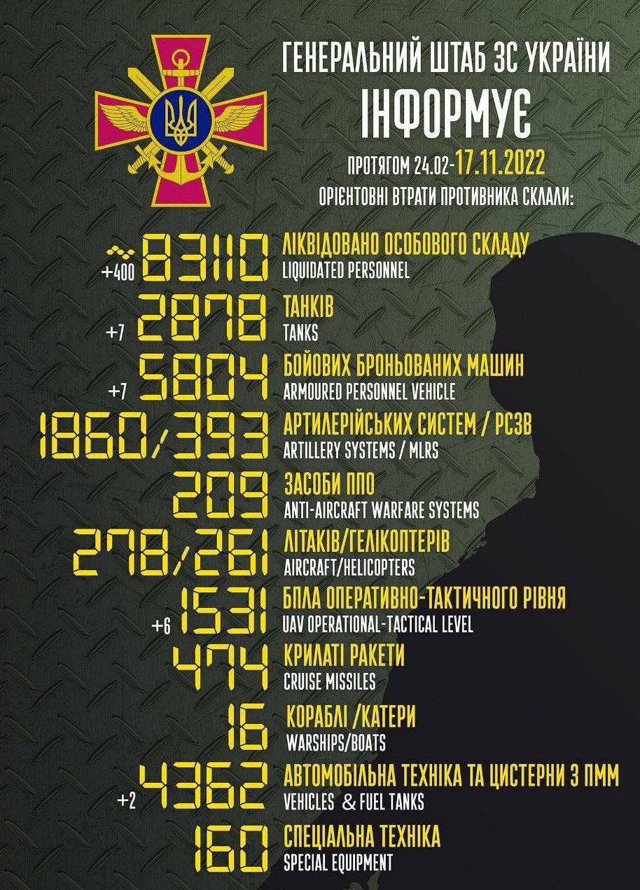 - #втрати окупантів станом на 17.11
