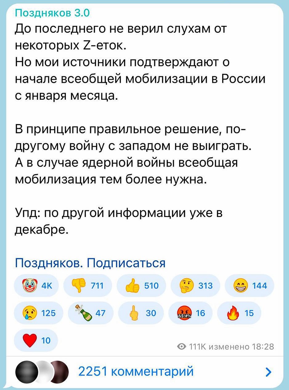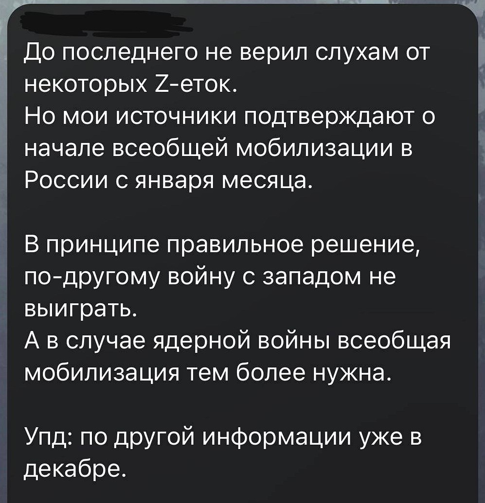 - Уже точно мобілізація? У грудні-січні з чуток на росії хочуть оголосити загальну мобілізацію.