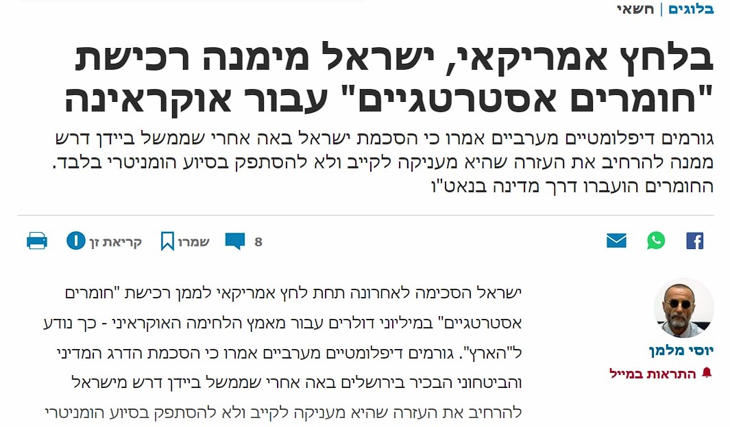 - Ізраїль витратив мільйони доларів зі свого бюджету на військову підтримку України. Це сталося після прохання Байдена допомогти ЗСУ у їхній оборонній війні.