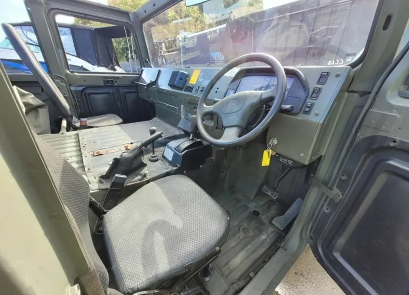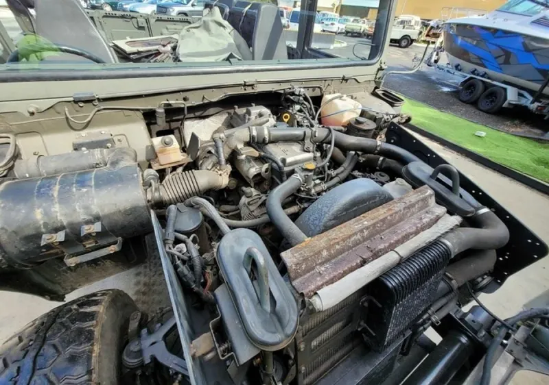 Очікуємо побачити і під капотом щось знайоме, у вигляді дизельного V8, але… його тут немає. Двигун також дизельний, але рядний, чотирициліндровий, потужність 150 л.с. Це 4.1 літровий турбодизель, Такий ставили на легкі вантажівки типу Toyota Dyna, ще на якісь невеликі автобуси. Трансмісія автоматична, на відміну від HMMWV, Варіант ручної коробки тут не передбачений у принципі.