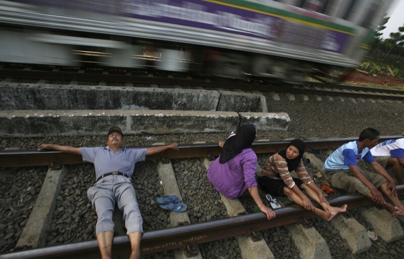 Селяни в Індонезії вірять, що лежання на залізничних коліях вилікує їх від багатьох хвороб