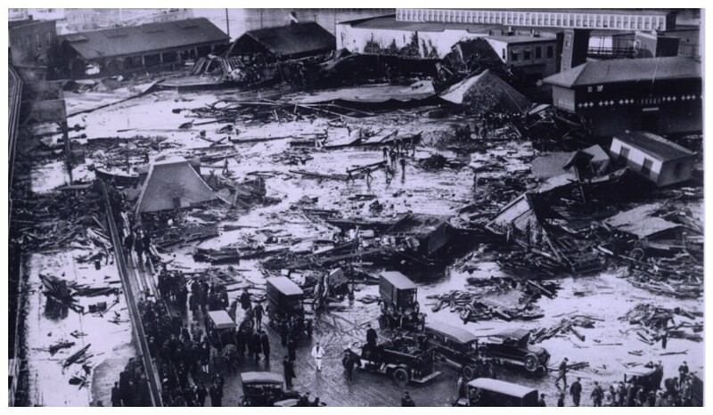 Лондонський пивоварний завод "Підкова" процвітав. Якось на одному з резервуарів урвався захисний обруч. Важила ця махіна цілих 700 кілограмів. У гігантській бочці було 560 тисяч літрів портера. Події не надали особливого значення, адже подібні поломки траплялися і раніше. Але тут трапилося щось непередбачуване: прогримів вибух і тонни рідини вилилися на вулиці. Чотириметрове пивне цунамі пронеслося містом, перетворивши його на руїни і забрав життя восьми людина, і багато постраждалих.