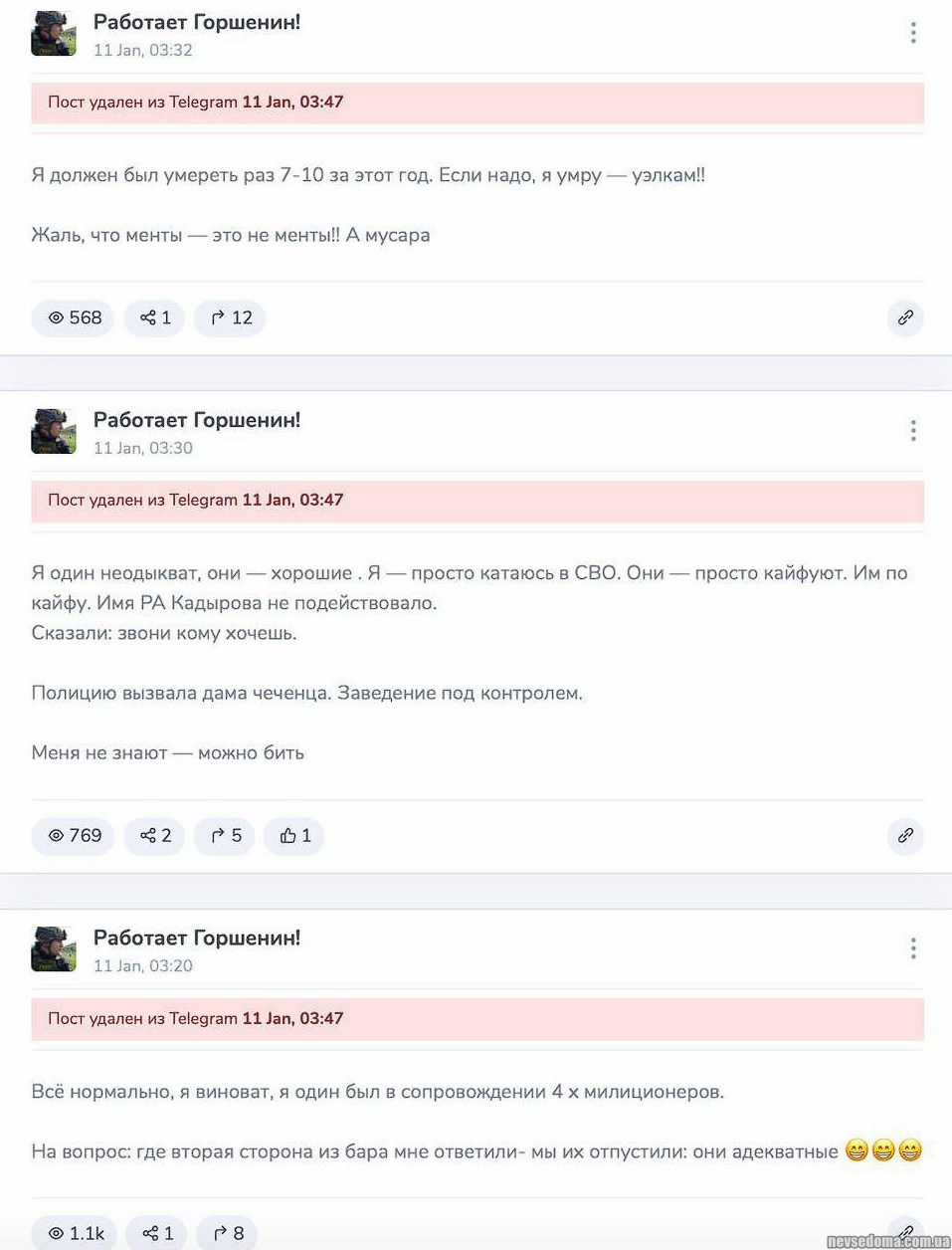 Відомо, що Горшенін відпочивав у барі. Там він зчепився із чеченами, які стверджували, що чоловік не "на своїй землі" і жодних прав тут не має. На місце приїхала поліція та затримала лише кореспондента.