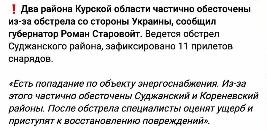 - У Курській народній великий переполох. Сидять без світла, уявляєте?