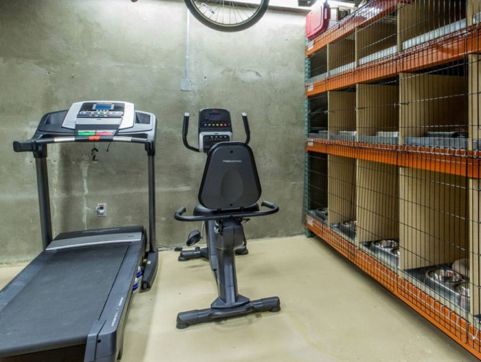 Спорт, як відомо, життя, тому творці притулку передбачили тренажери. Ну і братів наших менших кидати не можна, тому тут є ціла стіна із клітин для тварин.