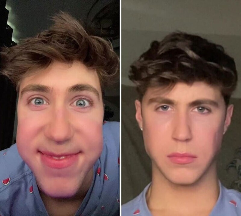Ідея досить проста. Блогери демонструють, як би вони виглядали, якби витягнули руку з телефоном під час фотографування, роблячи зум на особа. Перетворення чудові. Коли геометрія обличчя вирівняна, воно виглядає зовсім не так, як у передній камері.