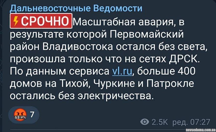 Поки пропаганда РФ розповідає про те, як "Європа завтра сидітиме без світла та тепла", то у Первомайському районі Владивостока — 400 будинків без світла сидять вже зараз.