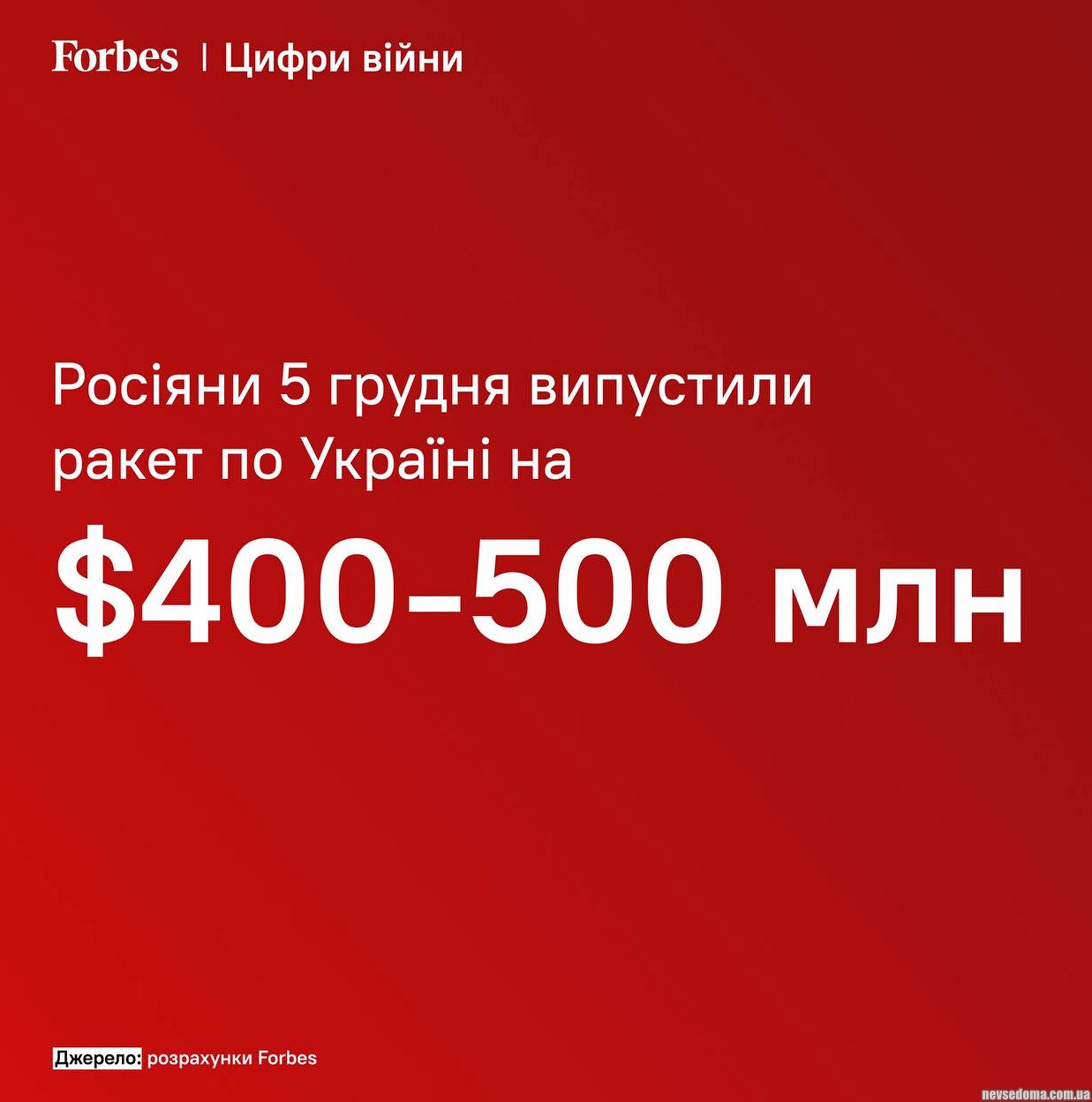- Росія випустила територією України ракет, загальна сума яких становить $400-500 млн, — Forbes.