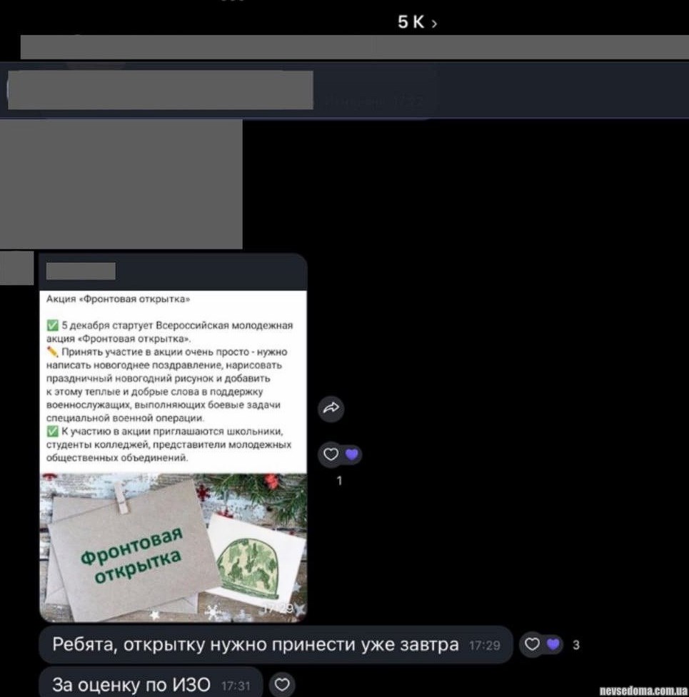 Школярів змушують робити листівки для "другої армії світу" та підтримки їхнього духу…
