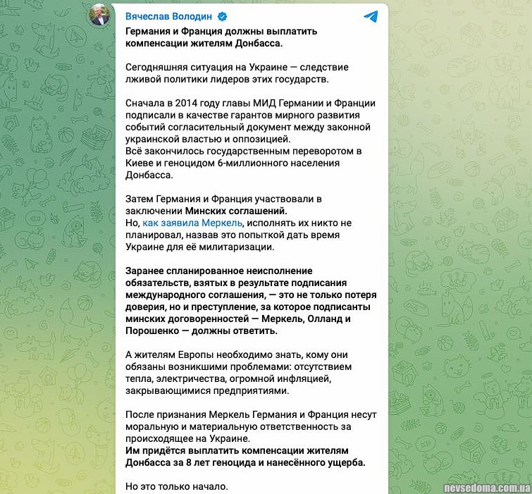 Інакше слова путінської підстилки Володіна трактувати складно.