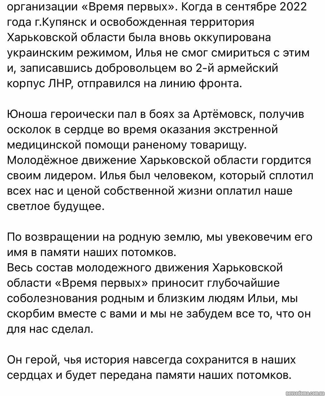 Цього разу малолітка із Куп'янська. Після визволення Харківської області втік до Білгорода, а там потрапив під могилізацію та задвохсотився під Бахмутом.