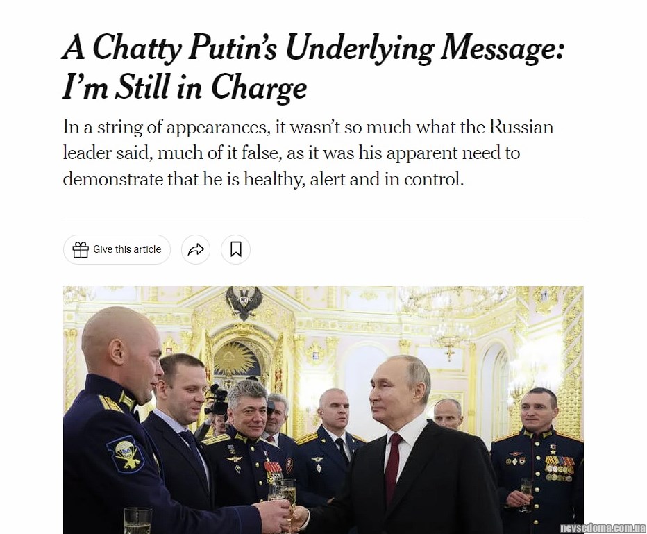 У NYT заявили, що самі собою поява Путіна – послання диктатора. Він хоче зробити вигляд, що здоровий, пильний і все ще може керувати.