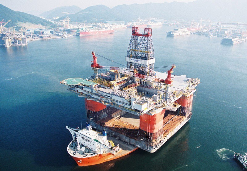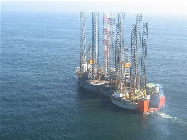 Тут "Блакитний Марлін" переміщає величезну нафтову платформу як єдине ціле.