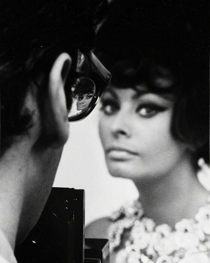 27. Річард Аведон та Софі Лорен у своїй студії у Нью-Йорку, 1966 рік. Фото Таціо Секк'яролі