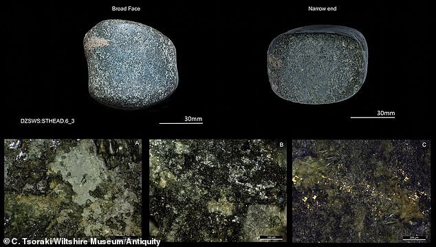 Дивовижні поліровані камені виявили вчені у похоронному у кургані біля Стоунхенджа. Камені містять сліди золота і, на думку експертів, ймовірно, 4000 років тому входили до набору інструментів стародавнього ювеліра.