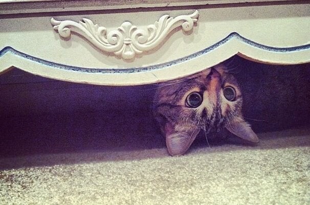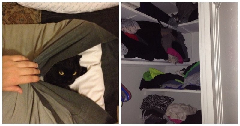 Кожен щасливий господар котейки знає, що коли вихованець захотів сховатись у будинку, то його в житті не знайдеш. Ваш хитруючий ніндзя знає найзатишніші куточки, і досконало володіє мистецтвом маскування. Погляньте на їх хитромудрі укриття.