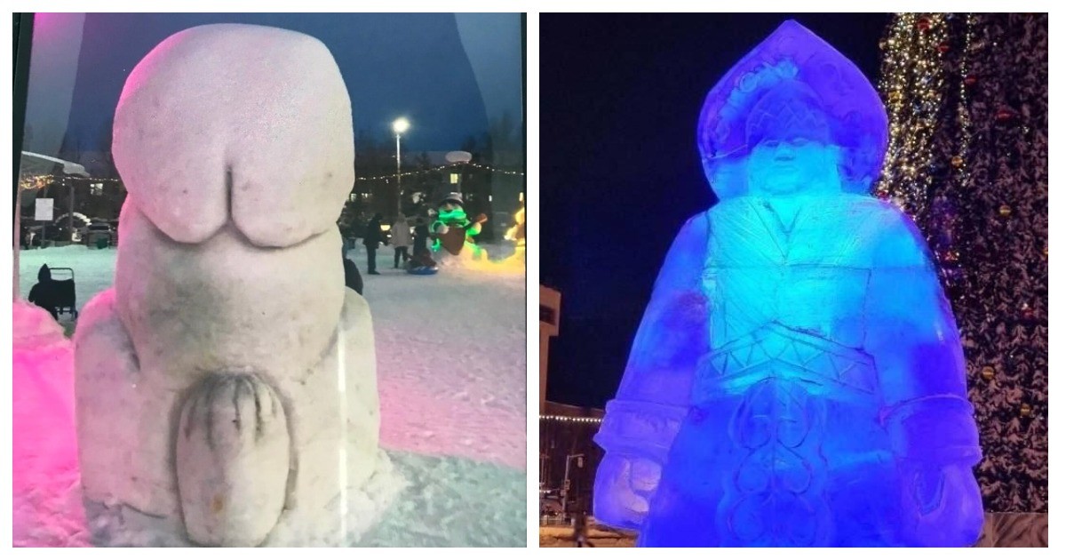 До цього Нового року у різних містах нашої Батьківщини встановили крижані скульптури. Деякі з них, м'яко кажучи, дивні.