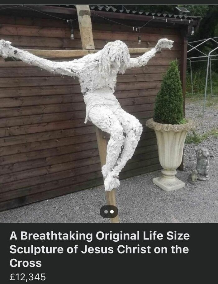 11. "Захоплююча дух оригінальна скульптура Ісуса Христа на хресті на повний зріст", 12345 фунтів стерлінгів