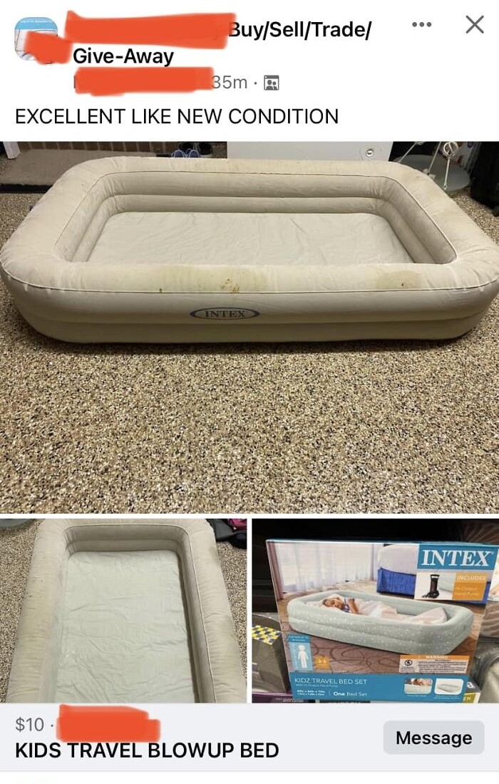 30. "Нове, в ідеальному стані" дитяче надувне ліжко, 10 доларів