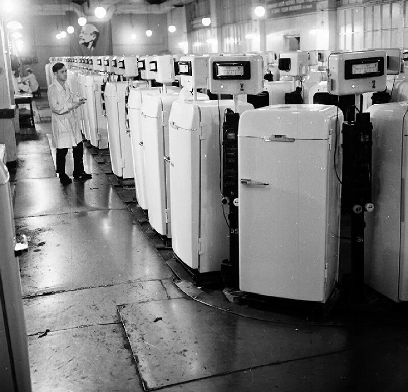 Москва, завод ім. Лихачова, на потоковій лінії контролю холодильників, 1961 рік