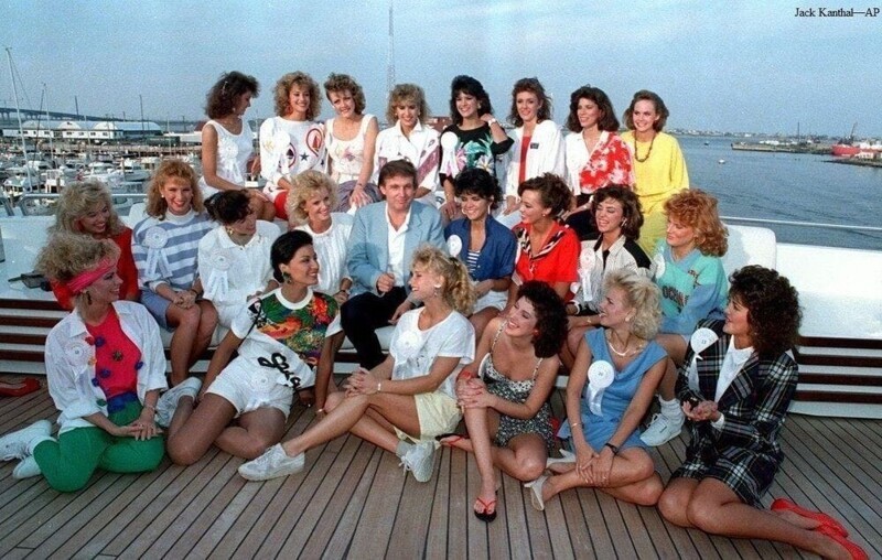 Дональд Трамп із конкурсантками "Міс Штат" відпочиває на борту своєї яхти в Атлантік-Сіті, Нью-Джерсі. 1988 рік