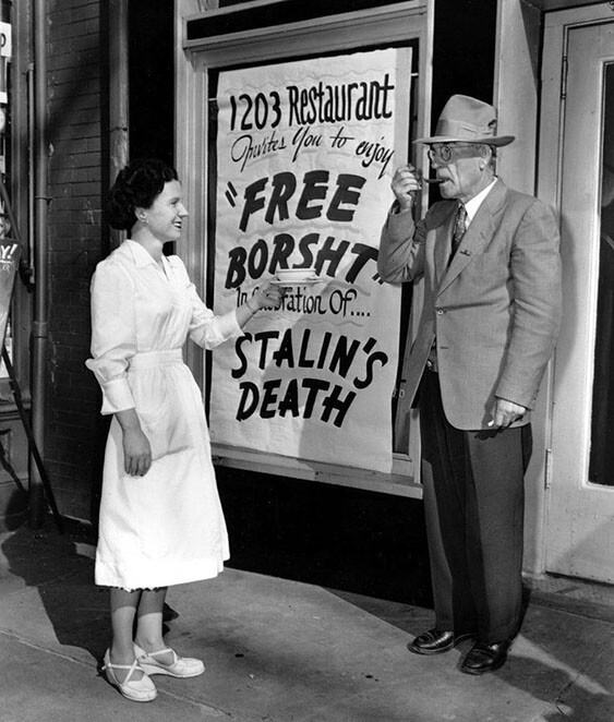 Безкоштовний борщ у ресторані, що належить українській громаді з нагоди смерті Сталіна. Нью-Йорк, 1953 рік
