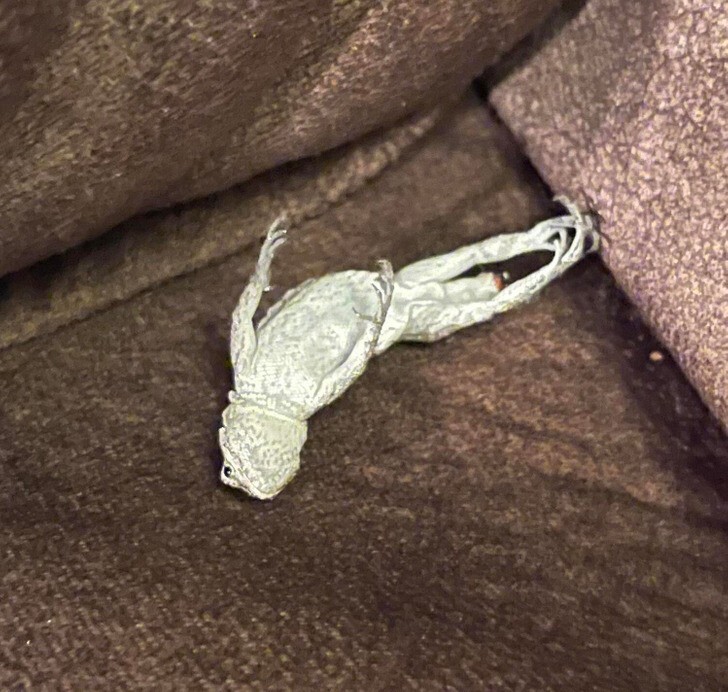 «Ця ящірка вдавала мертвої в моєму кріслі, поки я не спробував її викинути. Потім схопилася і втекла»