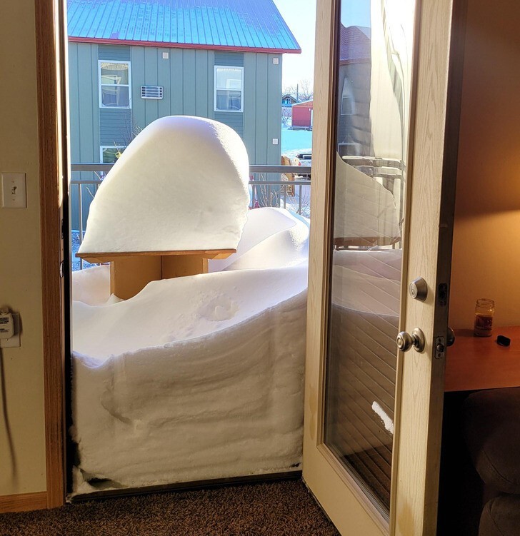 Здається, почистити балкон, не засинавши кімнату снігом, вже не вийде