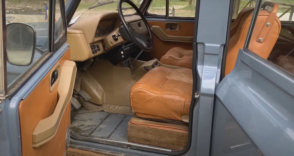 Подушок безпеки немає, кондиціонера також. Коробка передач механічна. Натомість салон просторий, позаду є місця для охоронців.