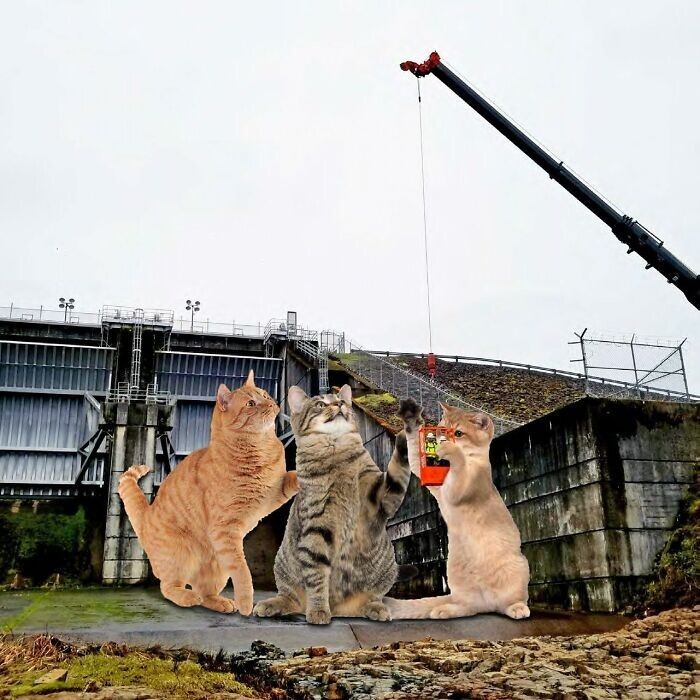 Котиків люблять усі – і навіть такі серйозні люди, як інженери. Корпус інженерів у США, федеральне відомство, випустило кумедний і креативний календар з гігантських кішок. На ньому котейки зображені поряд з дамбами, кранами та іншою інфраструктурою. Вийшло вкрай смішно!
